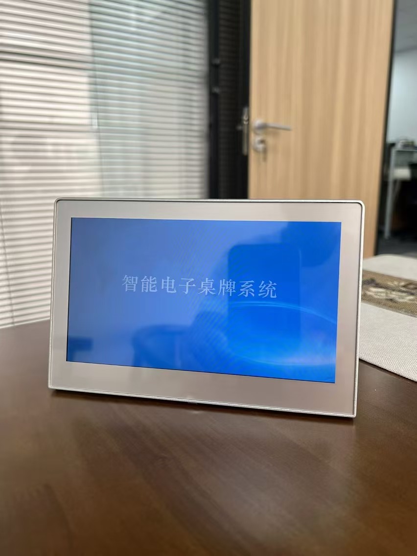这款桌牌设计简洁大气,线条流畅,放在任何会议桌上都是一道亮丽的风景线。而且,它采用了高清电子屏,显示效果清晰,信息一目了然。