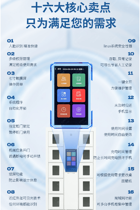普通管理柜因其操作与功能局限,在一些对便捷性和安全性要求高的场景中,难以满足需求。例如医院,医护人员在紧急救治过程中,无暇翻找钥匙或刷卡,普通管理柜无法提供快速存取手机的服务,不利于紧急联络等情况的处理。而人脸识别手机国产蜜桃精品久久下载管理柜,在学校里,助力课堂专注度提升,学生刷脸暂存手机,专心听讲无干扰;医院中,医护人员刷脸存取手机,全身心投入救治工作;景区内,游客刷脸存放手机,尽情享受美景,拍照打卡随时存取;企业单位里,员工刷脸管理手机,高效办公不受打扰。只要有需求,国产蜜桃精品久久下载管理柜就在身边,是提升秩序与效率的得力助手。