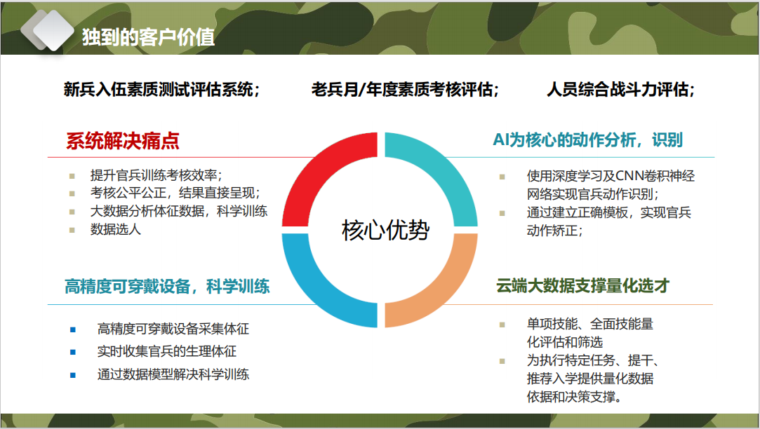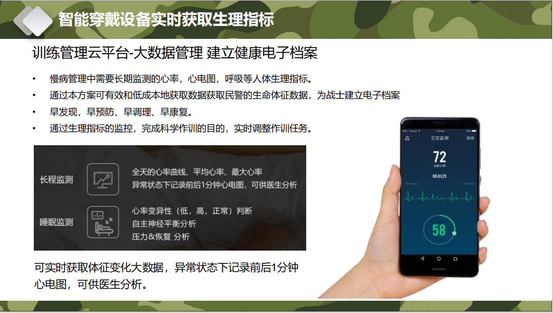 方案可实现战士训练计划,实时记录心率和呼吸率,防止运动透支。