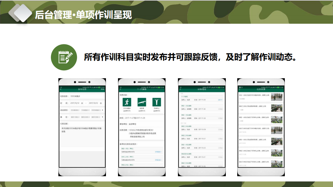 训练计划完成情况可进行随时监督管理;精准作训到单位、到个人