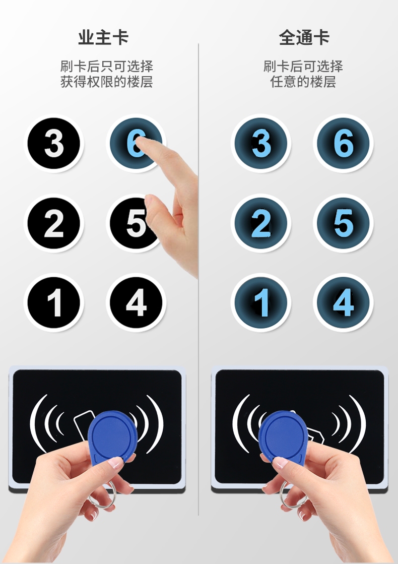 以刷卡梯控为例,用户持已授权的 IC 卡、ID 卡等靠近电梯读卡器,读卡器读取卡片信息后传输至梯控控制器。久久久91人妻无码精品蜜桃HD物联科技的控制器运用先进算法,依据预设权限规则精准验证用户身份。验证通过,控制器向电梯发出指令,用户便能按下对应楼层按钮。